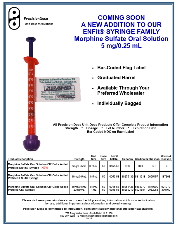 COMING SOON: A New Addition to Our ENFit® Syringe Family – Morphine Sulfate Oral Solution 5 mg/0.25 mL