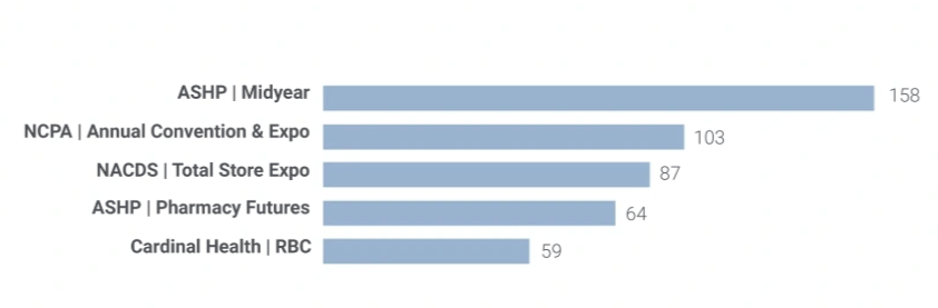– Exhibited at one of the following national conferences in the previous year: APhA; ASCP Annual Meeting & Exhibition; Asembia’s Summit; ASHP Midyear Clinical Meetings & Exhibition; Cardinal Health RBC; McKesson ideaShare; NACDS Total Store Expo; NASP Annual Meeting & Expo; NCPA Annual Convention and Expo; Pharmacy Futures (ASHP Summer); ThoughtSpot.